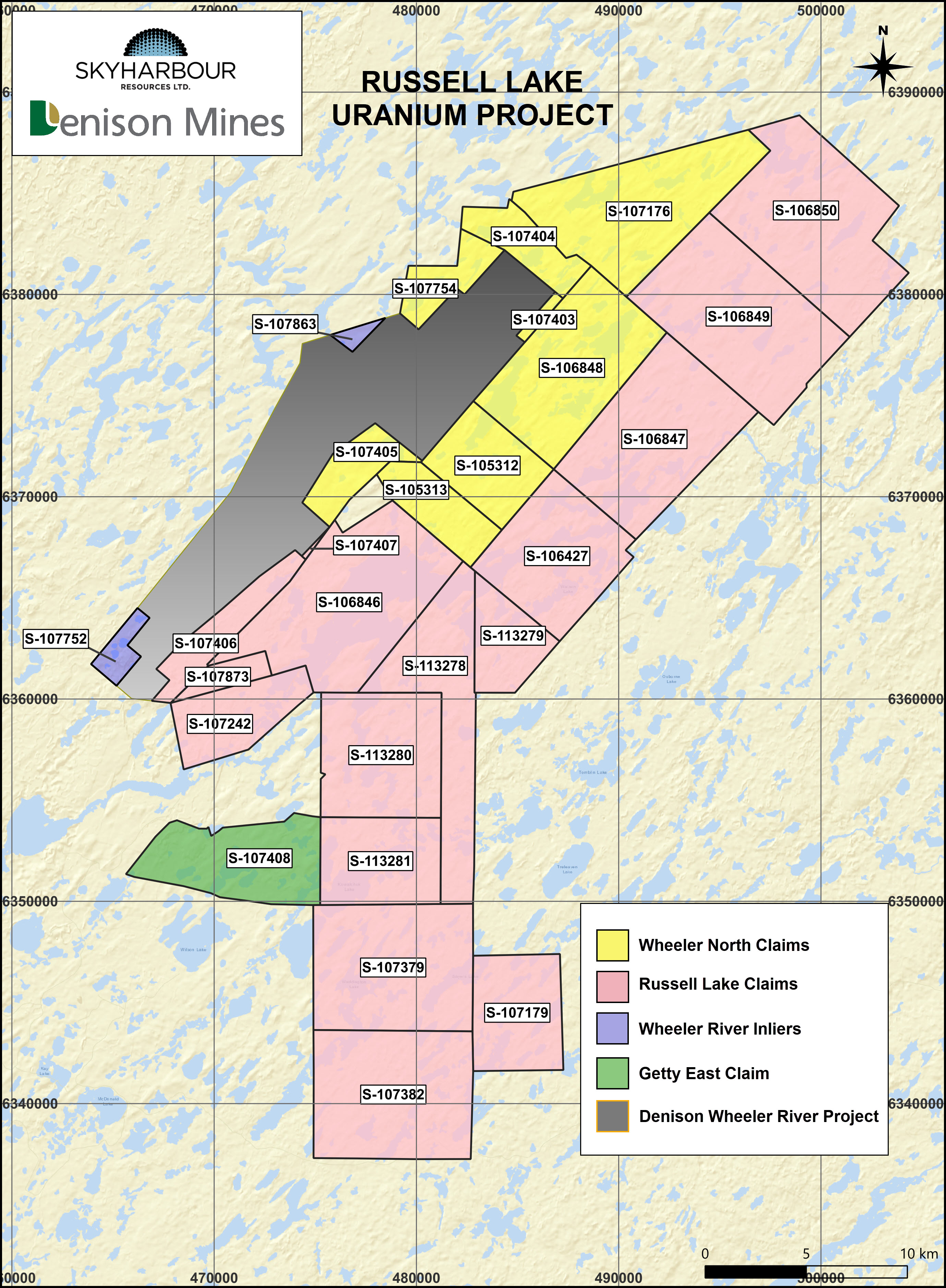 Jordan Trimble, President and CEO of Skyharbour, stated: “This is a transformative transaction for Skyharbour and our shareholders as it represents a major stamp of approval for Russell with up to $61.5 million in combined project consideration coming in. We are very pleased to expand upon our long-standing relationship with Denison and to partner with their team to advance one of the more prospective exploration projects in the Athabasca Basin proximal to existing and developing mines. Denison’s success in exploring, permitting, and developing the neighboring world-class Wheeler River Project will provide considerable insight and experience as we jointly pursue success at Russell. Further, this transaction delivers on our belief that Russell should be treated as multiple different projects due to the abundance of targets and sheer scale of the land package in one of the most prolific uranium exploration corridors in the world. The structure and terms of the Strategic Agreement allow Skyharbour to continue exploring as operator at the majority of the claims at Russell, while participating in the future success that Denison seeks as operator at the Wheeler North and Wheeler River Inlier claims. Furthermore, we will receive a significant amount of cash and Denison shares to help fund our exploration efforts and corporate activities through 2026.”