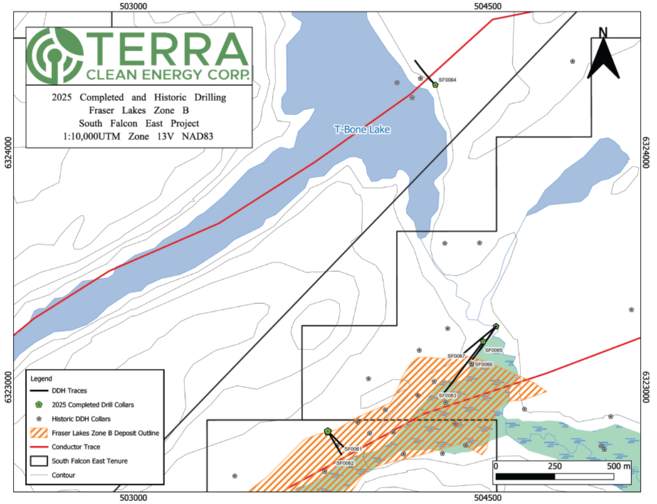 “With uranium present in six of seven holes drilled this winter, and the east and west of the property now tied together with mineralization, this was a very successful program, and we believe we have added significant value to the Property,” said Greg Cameron CEO of Terra Clean Energy. “We are seeing wider intervals of mineralization up to 75 metres and more consistent spikes of higher-grade uranium with 0.16% reported in Hole SF0065. The Fraser Lakes Uranium Deposit is shallow in nature making it ideal for an open pit scenario being only 150 metres below surface and not far from a powerline and Cameco’s Key Lake Uranium Mill, making it a unique opportunity, especially in a rising uranium price environment. As we continue to add pounds of uranium and higher grades, this deposit becomes more and more valuable.”