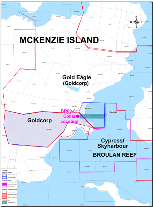 Drilling continues on the Cypress / Skyharbour Broulan Reef property with progress being seen to achieving depth on the McKenzie Island hole BR09-01. The hole is now at approximately 1295 metres in length with an azimuth of about 94 degrees and with a dip of 78 degrees.